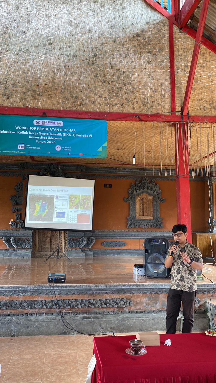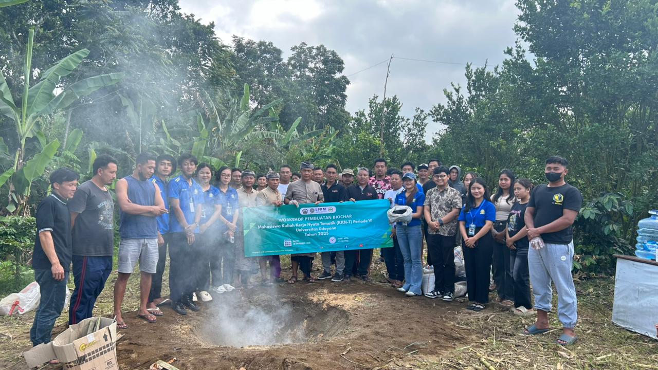 Bangli — Undergraduate students participating in the Thematic Community Service Program (KKN-T) Period VI of Udayana University in 2025, from the Agroecotechnology Undergraduate Program, Faculty of Agriculture, organized a workshop on biochar production using coffee husk waste in Lembean Village, Kintamani District, Bangli Regency, on Thursday, 18 December 2025.