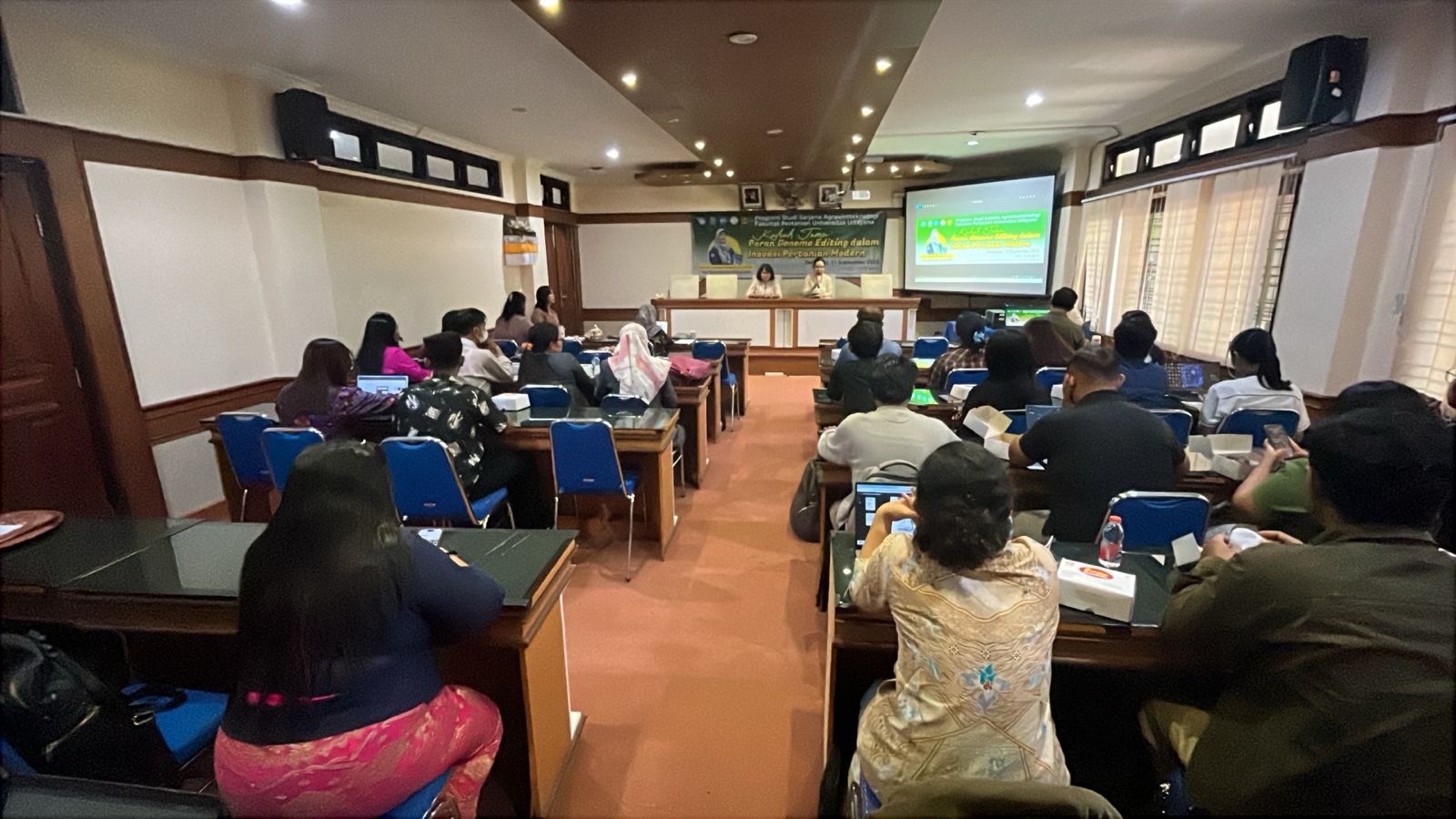The discussion session was highly interactive, with questions from both lecturers and students. Topics included the challenges of genetic transformation using tissue culture, strategies to avoid off-target effects, and how to verify trait inheritance—especially for seed-propagated plants. Prof. Endang stressed the importance of molecular analysis to confirm the edited gene's location and ensure stable trait inheritance in subsequent plant generations.